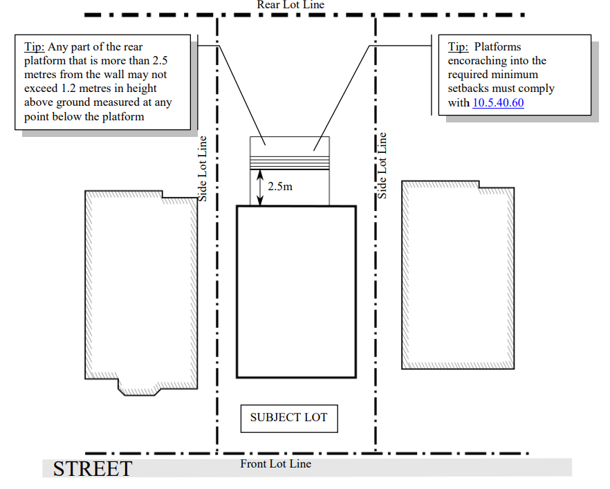 Toronto’s regulations balance the enjoyment of private outdoor space with neighbourhood livability. By limiting how far platforms can extend and how high they can be, the by-law protects privacy, prevents shadowing, and reduces impacts on adjacent properties.