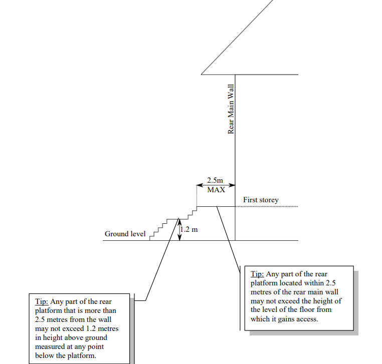 Where a platform is attached to, or within 0.3 metres of a rear main wall: