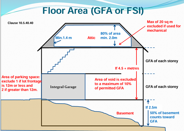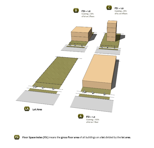 For example, if your lot is 400 square metres and your home’s GFA is 200 square metres, the FSI is 0.5. If the maximum permitted FSI in your zone is 0.6, that means your building can have up to 240 square metres of GFA on the same lot.